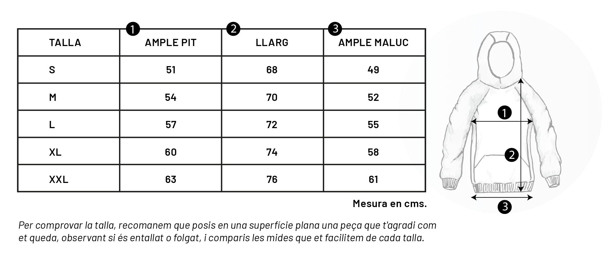 Si tens dubtes amb la talla o el model, pots escriure’ns per WhatsApp (621 33 04 12) o per correu electrònic ([email protected]) — t’assessorarem encantats perquè la teva peça s’ajusti perfectament a tu.