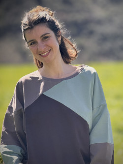 Cada Mutuum se confecciona con retales de tejidos seleccionados en nuestro taller, dando nueva vida a los materiales y fomentando una moda realmente sostenible. Con su patrón amplio y sus cortes dinámicos, aporta un toque creativo y versátil a cualquier look.